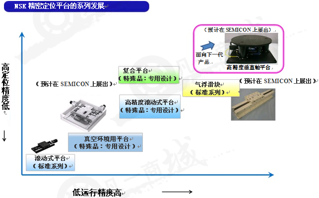 迄今,NSK已成功開發(fā)出定位平臺高性能化所需要的關(guān)鍵零部件。