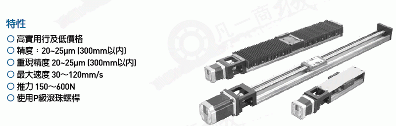 (1)多工設(shè)計(jì):整合驅(qū)動(dòng)用的滾珠螺桿及導(dǎo)引用U型軌道,除提供精密直線運(yùn)動(dòng),也能搭配多功能配件。在導(dǎo)入多用途的應(yīng)用設(shè)計(jì)時(shí)非常方便,也能達(dá)成高精密線性傳動(dòng)的需求。