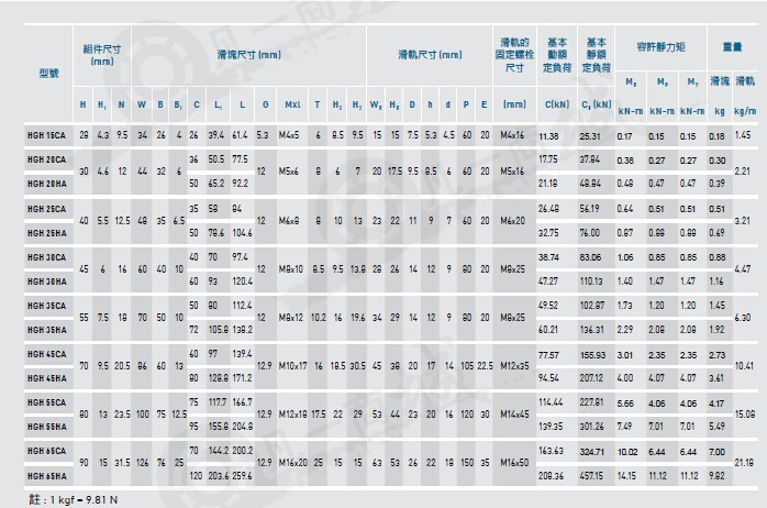 HG系列上銀直線導軌,為四列式單圓弧牙型接觸直線導軌,同時整合最佳化結(jié)構(gòu)設(shè)計之重負荷精密直線導軌,相較于其他上銀直線導軌提升了負荷與剛性能力;具備四方向等負載特色、及自動調(diào)心的功能,可吸收安裝面的裝配誤差,得到高精度的訴求。高速度、高負荷、高剛性與高精度化概念已成為未來全世界工業(yè)產(chǎn)品發(fā)展的趨勢,HG系列上銀直線導軌,即為基于此理念開發(fā)之產(chǎn)品。