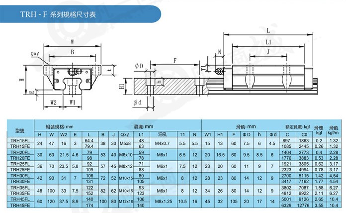TBI直線導軌為一種滾動導引,借由鋼珠在滑塊與滑軌之間作無限滾動循環(huán),負載平臺能沿著滑軌輕易地以高精度作線性運動。與傳統(tǒng)的滑動導引相較,滾動導引的摩擦系數(shù)可降低至原來的1/50,由于起動的摩擦力大大減少,相對的較少無效運動發(fā)生,故能輕易達到μm級進給及定位。再加上滑塊與滑軌間的束制單元設(shè)計,使得直線導軌可同時承受上下左右等各方向的負荷,上述陳列特點并非傳統(tǒng)滑動導引所能比擬,因此機臺若能配合滾珠螺桿,使用直線導軌作導引,必能大幅提高設(shè)備精度與機械效能。