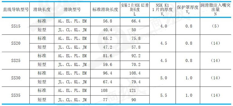 NSK導軌SS系列特點: