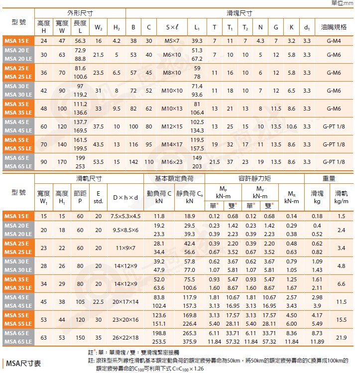 PMI銀泰直線導(dǎo)軌MSA系列產(chǎn)品特性