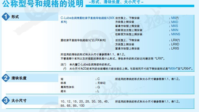 IKO直線導(dǎo)軌LRX系列可發(fā)揮最高滾動(dòng)導(dǎo)向性能的圓柱滾子型直線導(dǎo)向設(shè)備:該系列IKO直線導(dǎo)軌是最大限度發(fā)揮圓柱滾子的優(yōu)異特性,使承載負(fù)荷、剛性、摩擦特性、行走精度等各個(gè)方面的特性都達(dá)到最高性能的直線導(dǎo)向設(shè)備。IKO直線導(dǎo)軌C-Lube自潤滑、免維護(hù)LRX系列,滿足多樣需求的豐富產(chǎn)品群滑塊以法蘭型為主,還有截面高度低的低斷面法蘭型、低斷面方塊型等5種類型,滑塊長度在相同的截面尺寸下有4種不同的類型,用戶可根據(jù)機(jī)械、裝置的規(guī)格選擇最合適的IKO直線導(dǎo)軌。