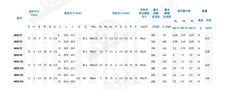 MGN系列直線導軌的特點:
